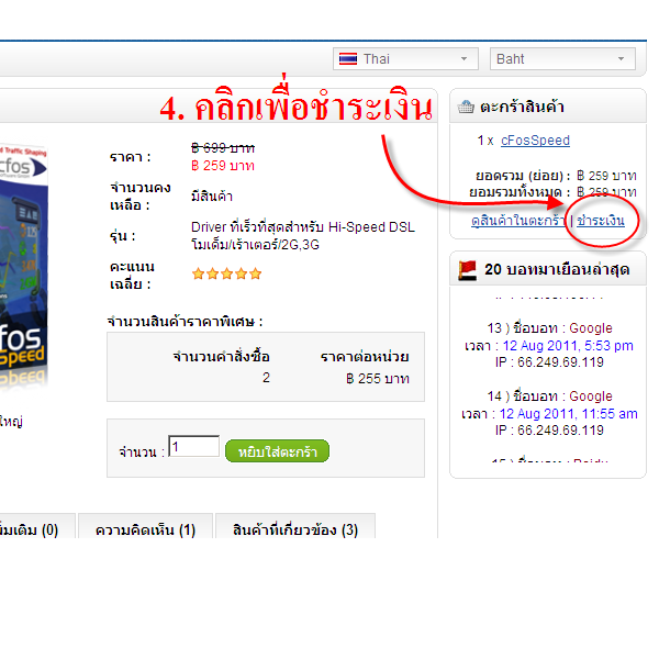วิธีการสั่งซื้อโปรแกรม cfos